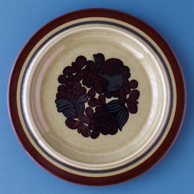 This design is very beautiful with the contrast between the slightly yellowish, transparent brown glaze and the bold dark brown floral pattern.