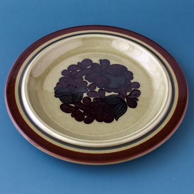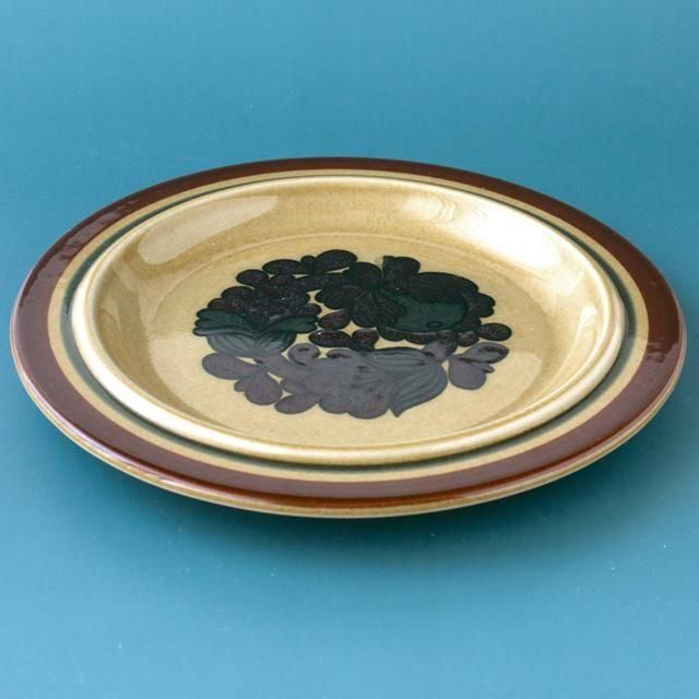 少し黄味がかった透明感のあるブラウンの釉薬にダークブラウンの力強い花模様が映えてとても美しいデザインです。