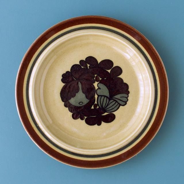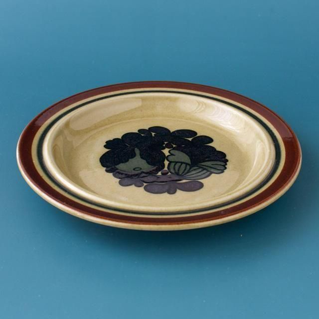 少し黄味がかった透明感のあるブラウンの釉薬にダークブラウンの力強い花模様が映えてとても美しいデザインです。