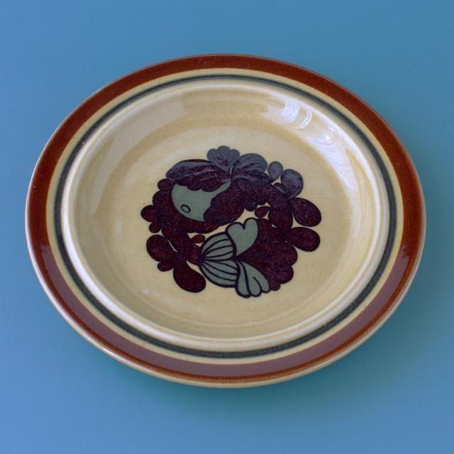This design is very beautiful with the contrast between the slightly yellowish, transparent brown glaze and the bold dark brown floral pattern.