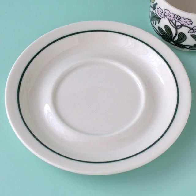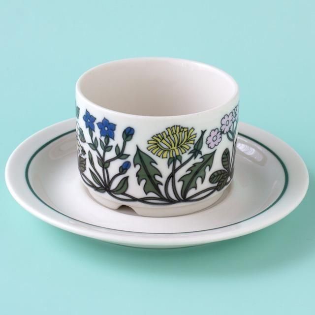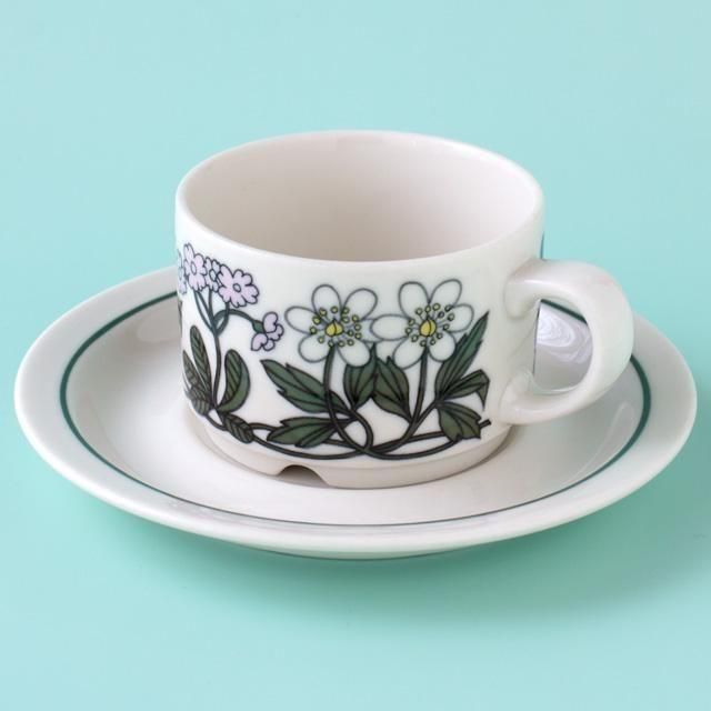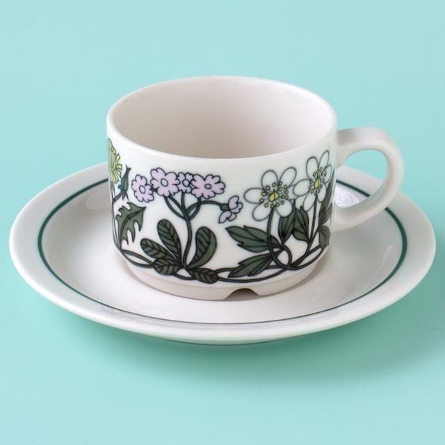 A charming variation of Arabia¡Çs Flora series, featuring a fine green line on the saucer and a glossy porcelain body.