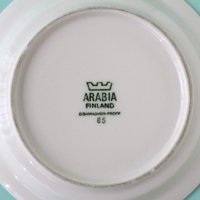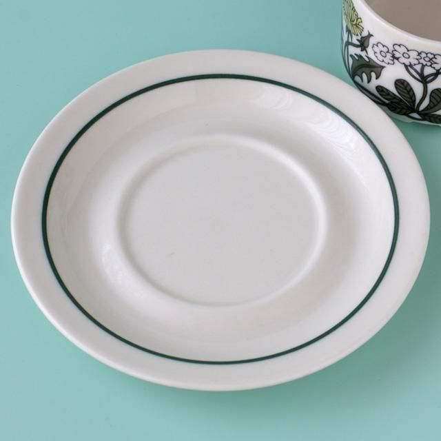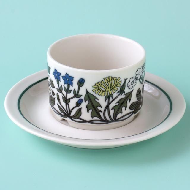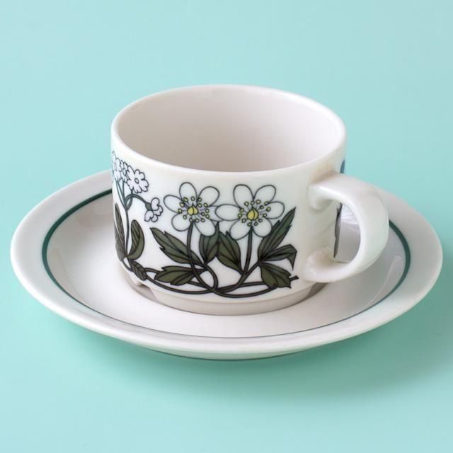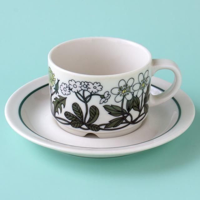A charming variation of Arabia¡Çs Flora series, featuring a fine green line on the saucer and a glossy porcelain body.
