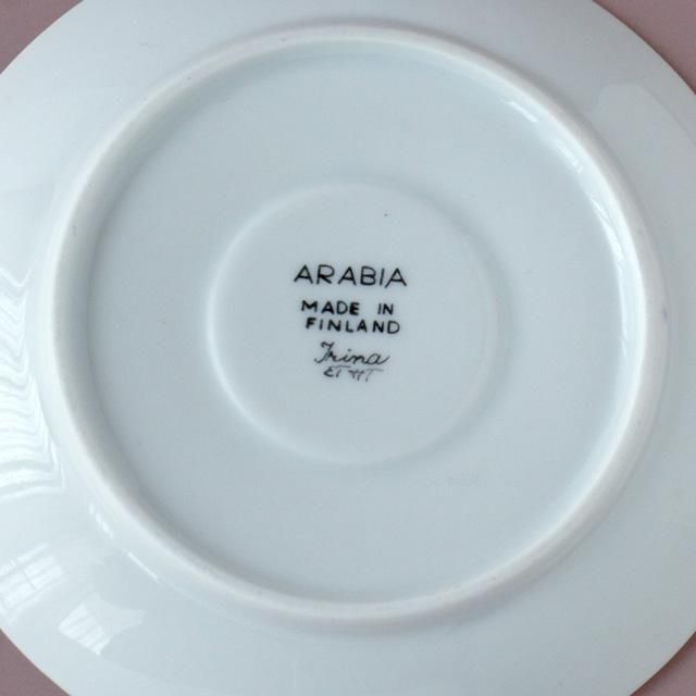 前半の「ET」はデコレーションデザイナー Esteri Tomula のイニシャルを、後半は絵付師(ペインター)の個人サインを示すと考えられています。どちらのマークも、当時の手描き生産によるわずかな個体差を物語ります。